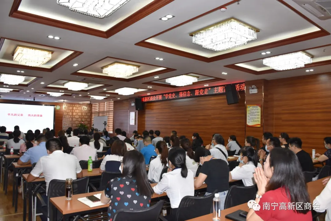 为认真贯彻落实习近平总书记关于抓好党史学习教育重要讲话和一系列指示精神,持续激发会员单位广大共产党员以及民营经济人士听党话、跟党走的思想自觉和行动自觉,引导会员企业党员干部进一步增强党性修养,提振干事创业精气神,6月29日上午,“共和国勋章”获得者李延年之子、南宁市委统战部副部长、市工商联党组书记李忠南为高新区商会会员企业党员干部作题为“学党史、强信念、跟党走”的党史学习教育专题授课,分享了老英雄李延年保卫国家、默默奉献的故事,广西集翔网大党员干部积极参与党史学习活动。